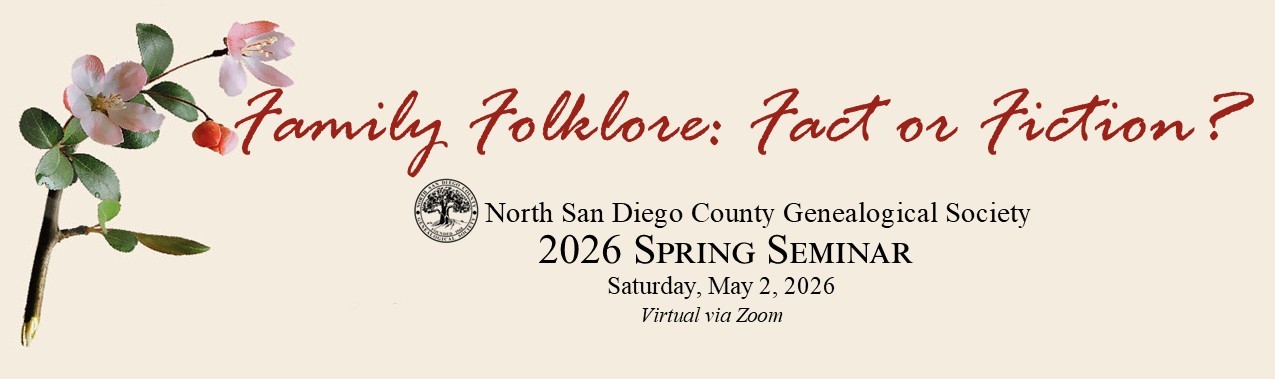 Have you ever investigated a family story that didn’t quite ring true, because the tale had several versions, or something was missing from the story, or the facts were confusing? If so, we would love to hear a case study account of your genealogical research. The theme of the 2026 NSDCGS Spring Seminar is Family Folklore: Fact or Fiction?, and will focus on genealogical research examples that either confirmed or refuted a family story. We are looking for case studies that illustrate a variety of research problems, approaches and resources. A case study defines a problem and presents background information, explores relevant resource options, describes the research process, and presents a solution or next steps.